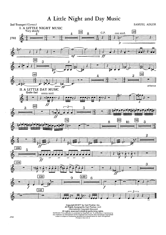 "A Little Night and Day Music - Trumpet 2" Sheet Music by Samuel Adler