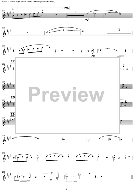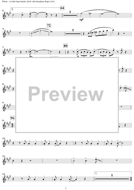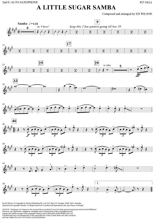 "A Little Sugar Samba - Alto Saxophone 2" Sheet Music by Ed Wilson