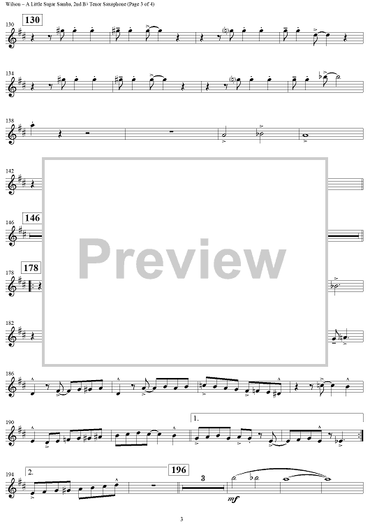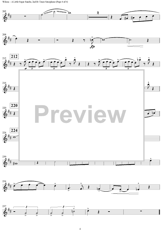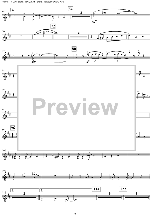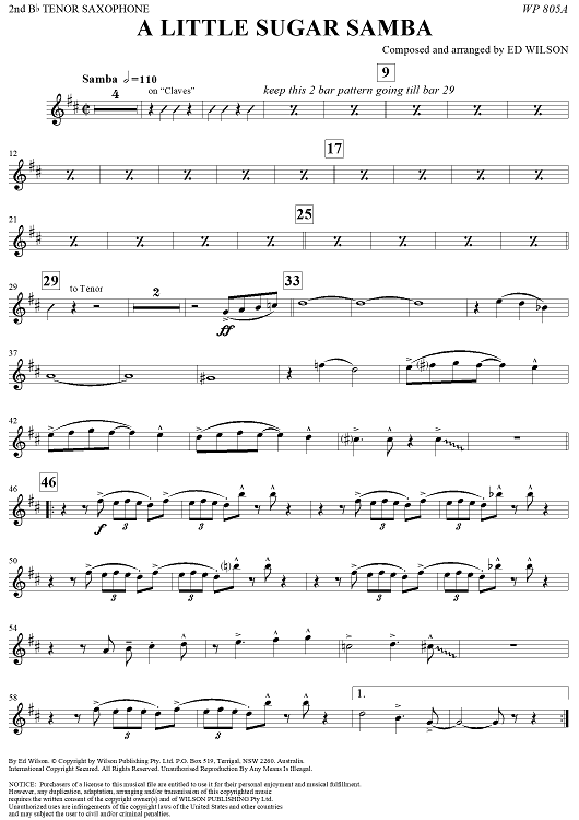 "A Little Sugar Samba - Tenor Saxophone 2" Sheet Music by Ed Wilson