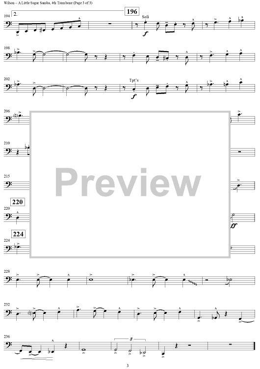 Digital Sheet Music for A Little Sugar Samba - Trombone 4 by Ed Wilson scored for Jazz Ensemble; id:312055