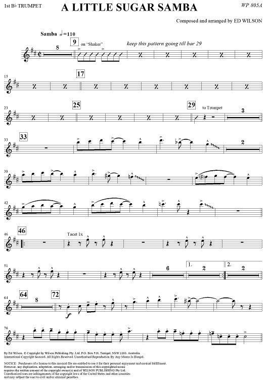 "A Little Sugar Samba - Trumpet 1" Sheet Music by Ed Wilson