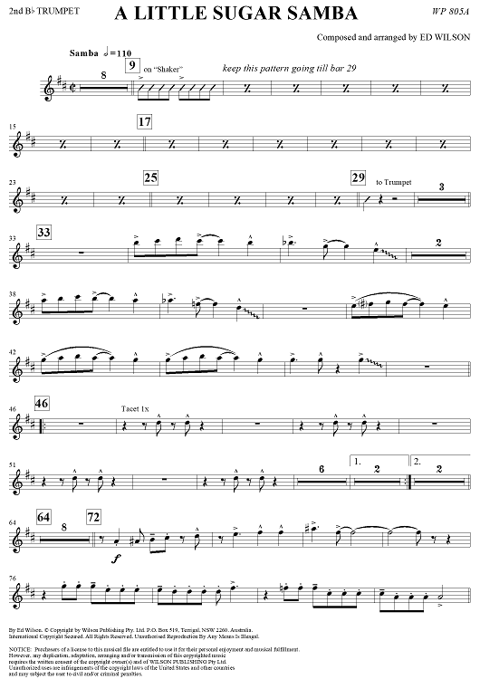 "A Little Sugar Samba - Trumpet 2" Sheet Music by Ed Wilson