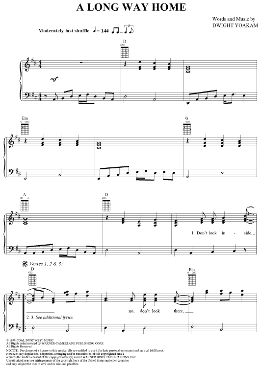 Digital Sheet Music for A Long Way Home by Dwight Yoakam scored for Piano/Vocal/Chords; id:124281