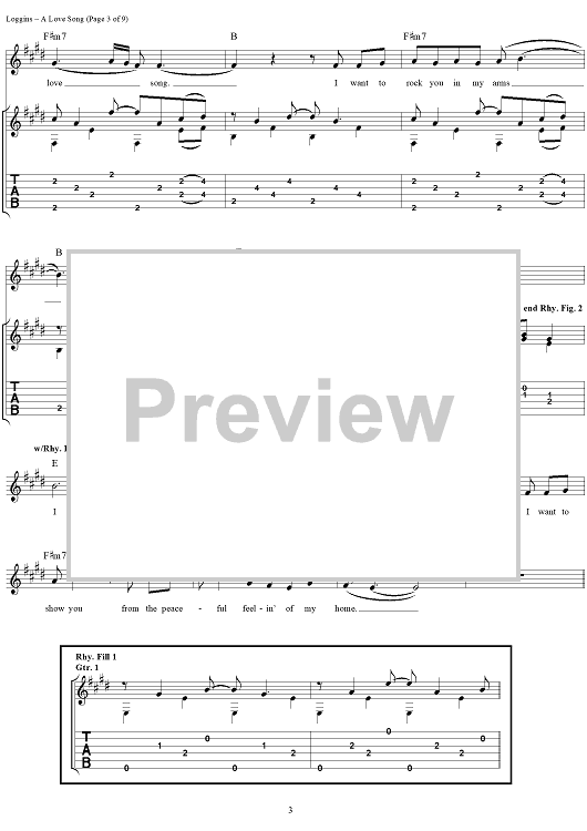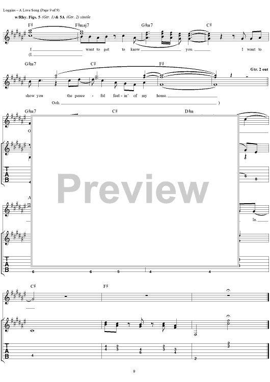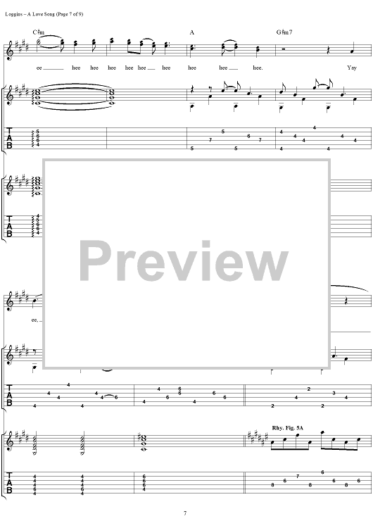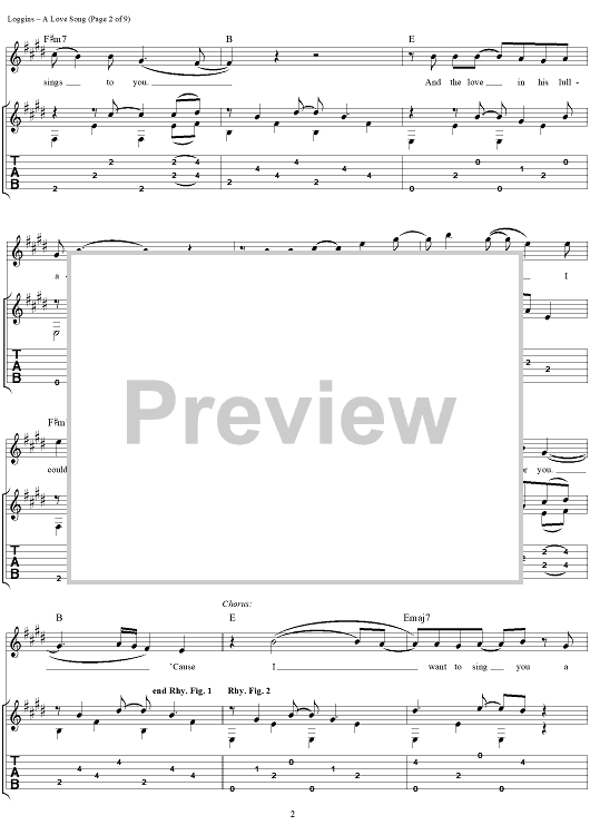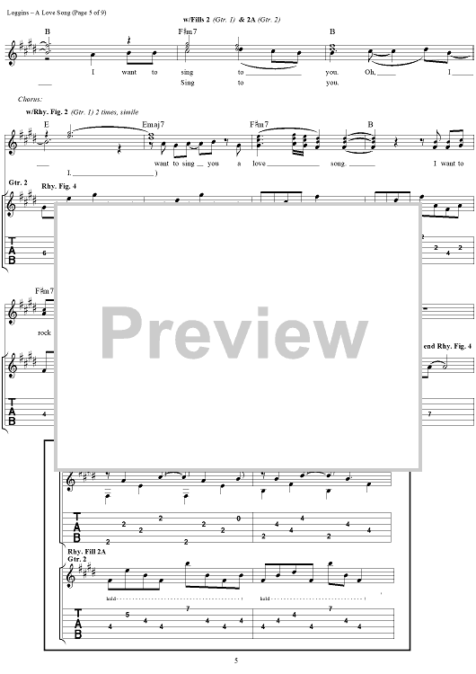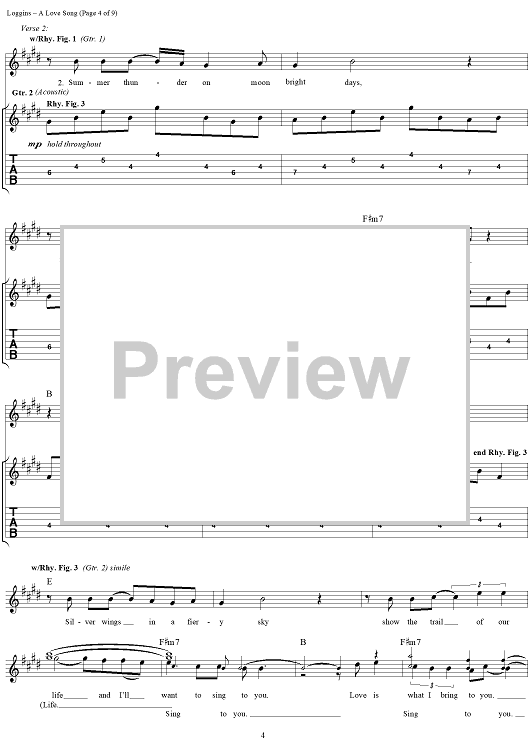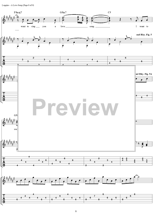 Digital Sheet Music for A Love Song by Kenny Loggins, Dona Lyn George, Jim Messina scored for Guitar Tab/Vocal; id:113596