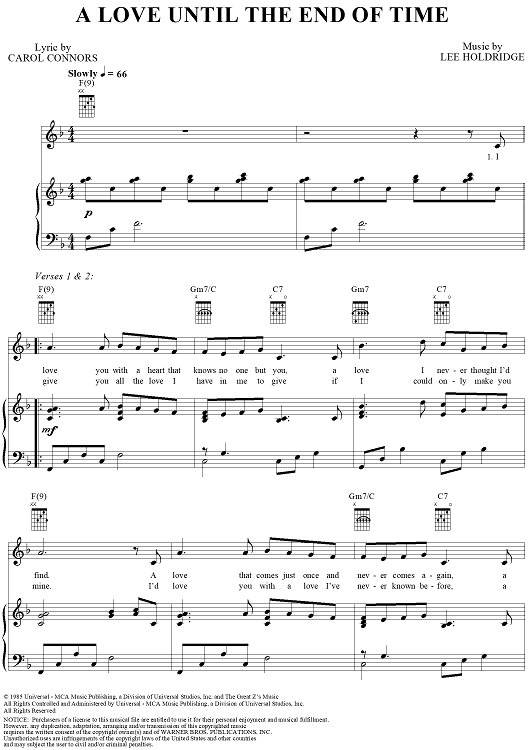 Digital Sheet Music for A Love Until the End of Time by Carol Connors, Lee Holdridge, Placido Domingo, Maureen McGovern scored for Piano/Vocal/Chords; id:203442