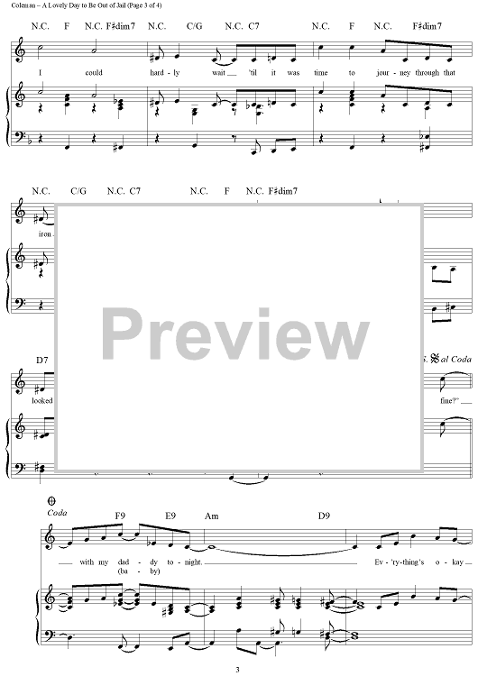 "A Lovely Day to Be Out of Jail" Sheet Music by Cy Coleman