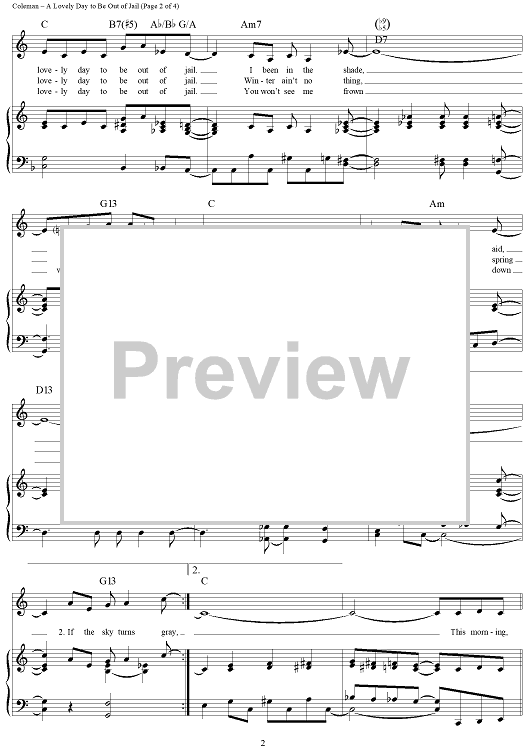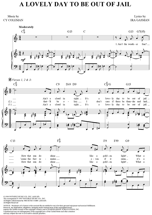 Digital Sheet Music for A Lovely Day to Be Out of Jail by Cy Coleman, Ira Gasman scored for Piano/Vocal/Chords; id:311473
