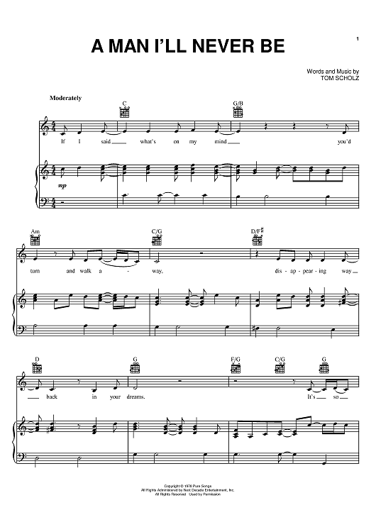 Digital Sheet Music for A Man I'll Never Be by Boston, Tom Scholz scored for Piano/Vocal/Chords; id:402809