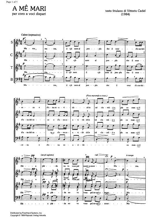 Digital Sheet Music for A Mê Mari by , Albino Perosa scored for SATB Choir; id:329852