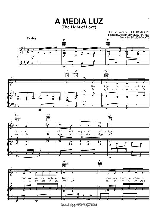 Digital Sheet Music for A Media Luz (The Light Of Love) by Emilio Donato, Ernesto Flores, Boris Randolph scored for Piano/Vocal/Chords; id:368378