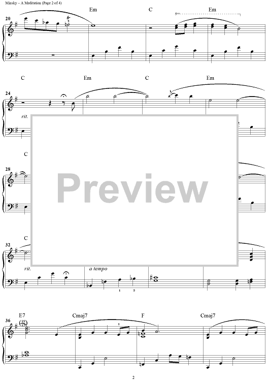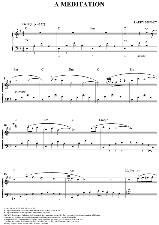Digital Sheet Music for A Meditation by Larry Minsky scored for Piano Solo; id:285879