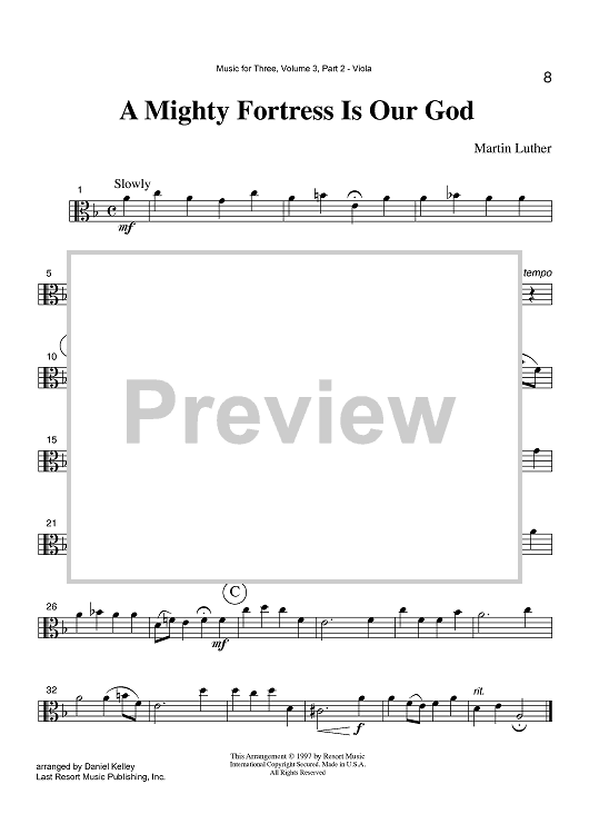Digital Sheet Music for A Mighty Fortress Is Our God - Part 2 Viola by , Martin Luther, Daniel Kelley scored for Instrumental Trio; id:423945