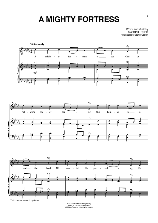 Digital Sheet Music for A Mighty Fortress by Steve Green, Martin Luther scored for Piano/Vocal/Chords; id:390212
