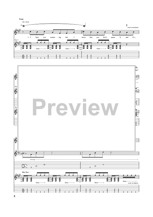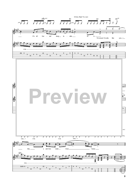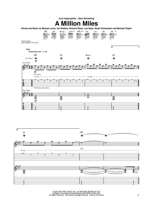 Digital Sheet Music for A Million Miles by Michael Lewis, Lostprophets, Richard Oliver, Ian Watkins scored for Guitar Tab; id:374983