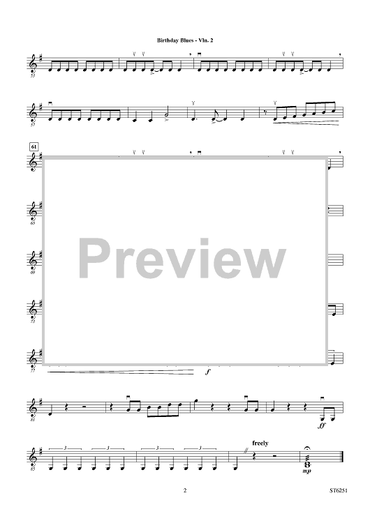 "A Minor Case of the Birthday Blues - Violin 2" Sheet Music by Lauren Bernofsky