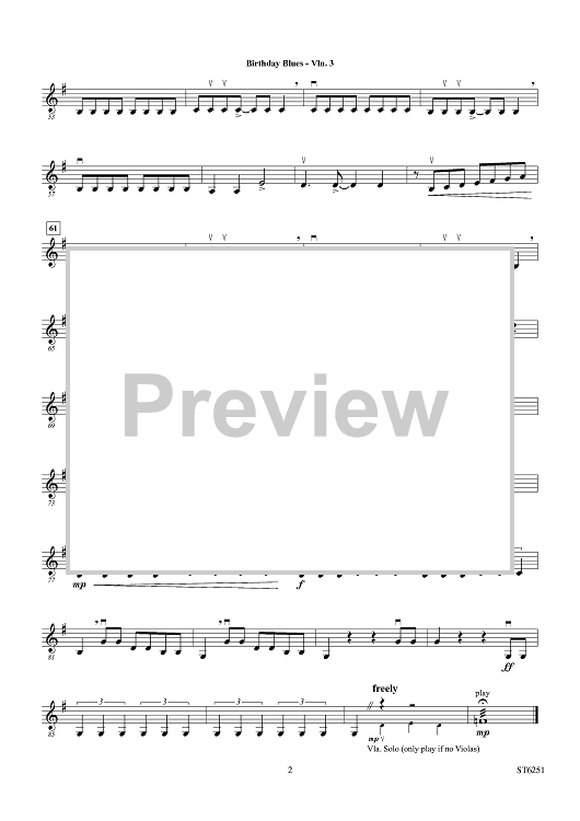 Digital Sheet Music for A Minor Case of the Birthday Blues - Violin 3 (Viola T.C.) by Lauren Bernofsky scored for String Orchestra; id:421855