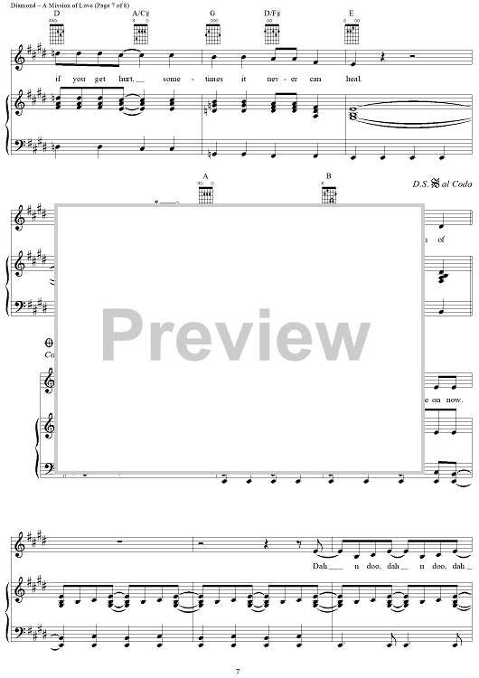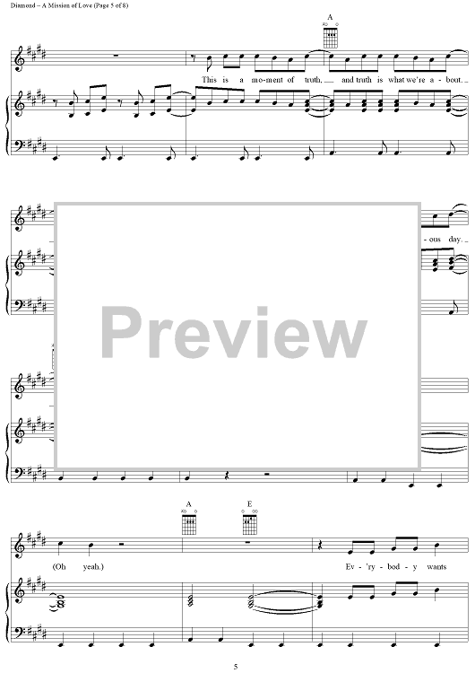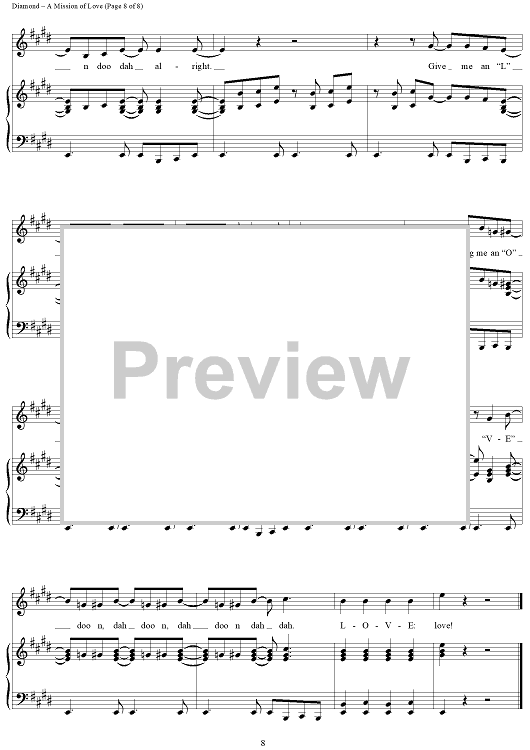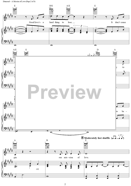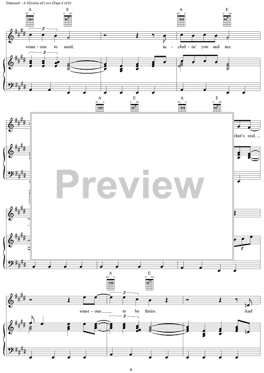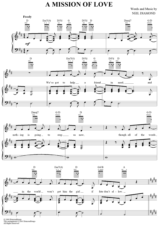 Digital Sheet Music for A Mission Of Love by Neil Diamond scored for Piano/Vocal/Chords; id:367359