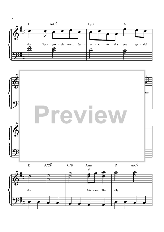 Digital Sheet Music for A Moment Like This by John Reid, Jörgen Elofsson, Kelly Clarkson scored for Big Note Piano; id:381749