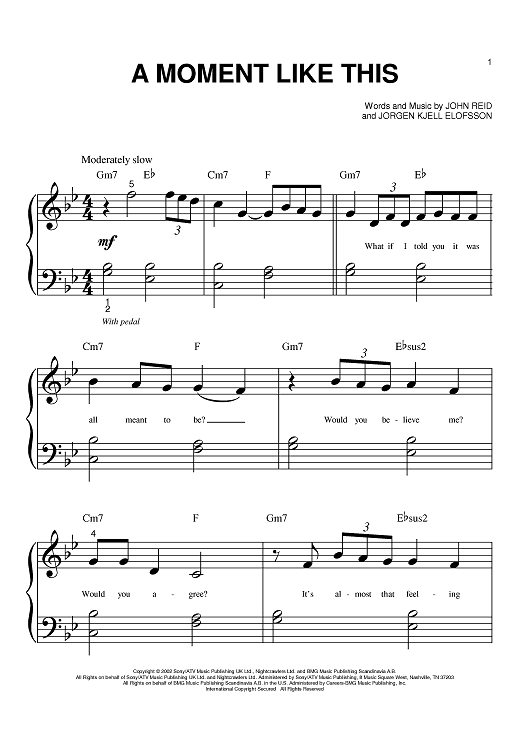 "A Moment Like This" Sheet Music by Kelly Clarkson