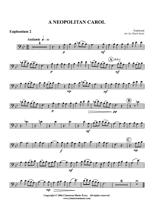 Digital Sheet Music for A Neopolitan Carol - Euphonium 2 BC/TC by Traditional, Chuck Guzis scored for Tuba Quartet; id:360233