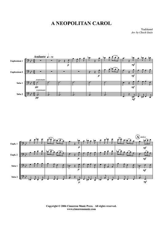 Digital Sheet Music for A Neopolitan Carol - Score by , Traditional, Chuck Guzis scored for Tuba Quartet; id:360231