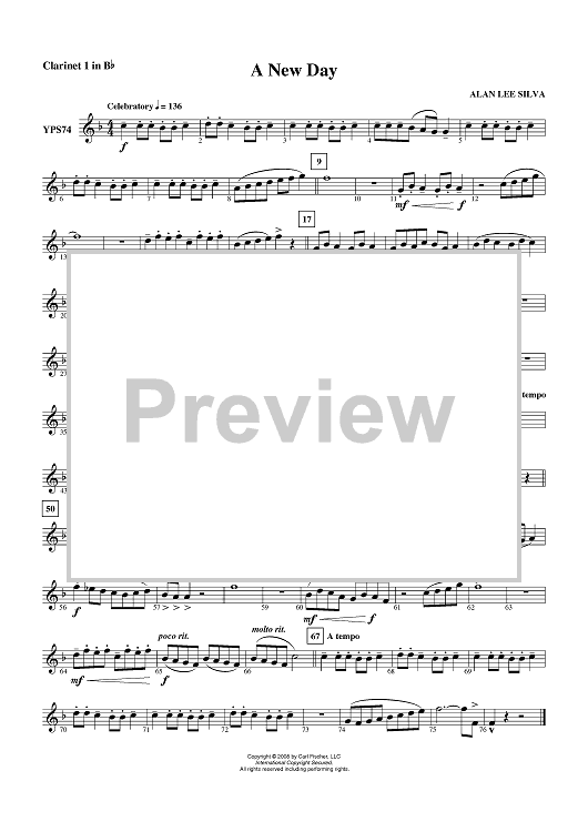 "A New Day - Clarinet 1 in B-flat" Sheet Music by Alan Lee Silva
