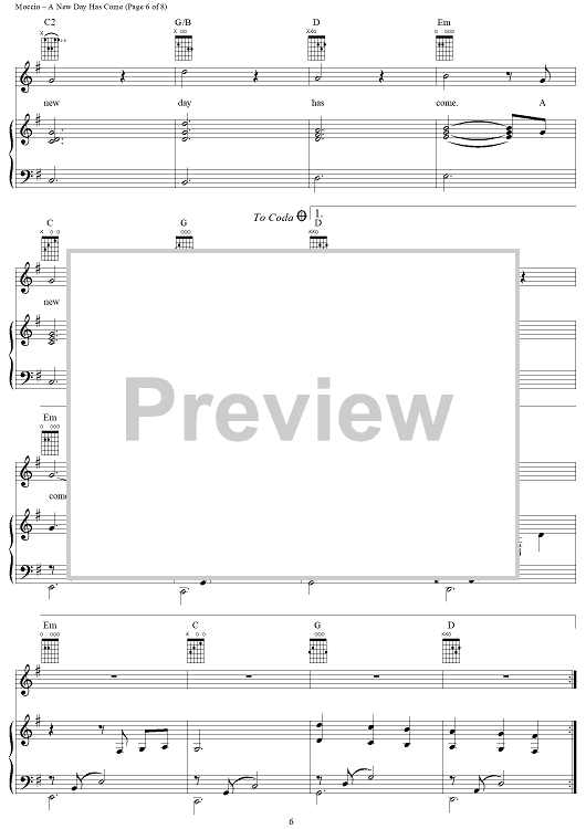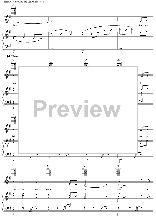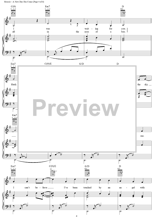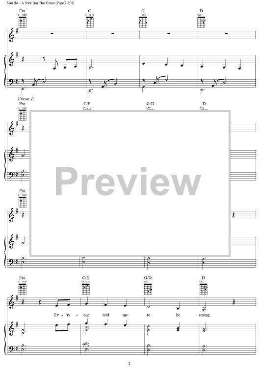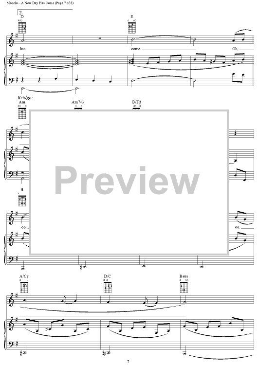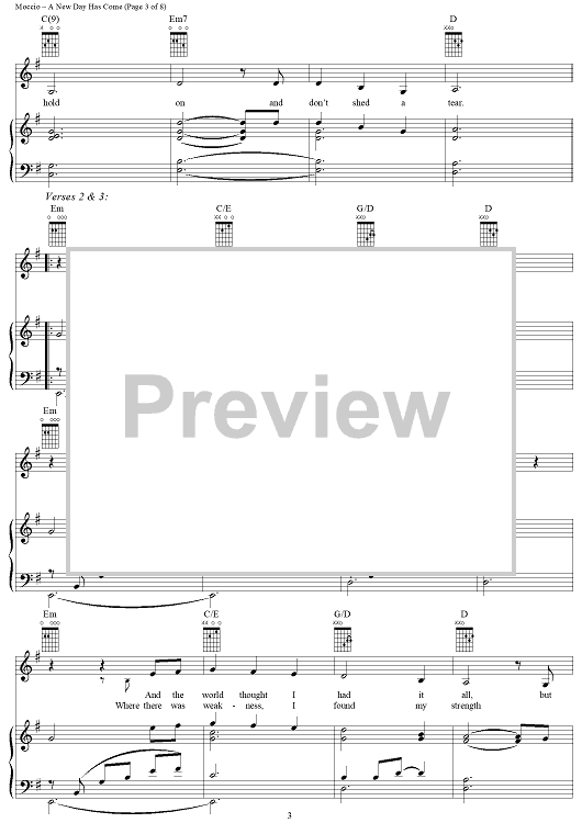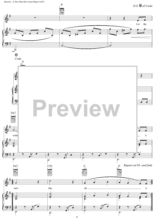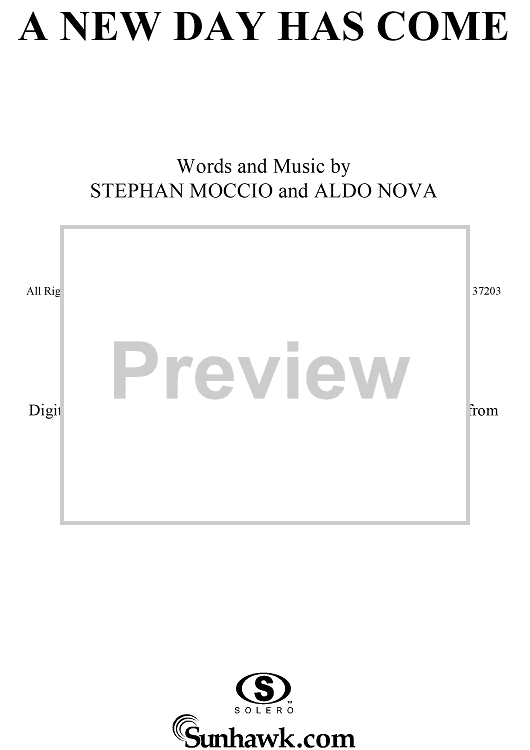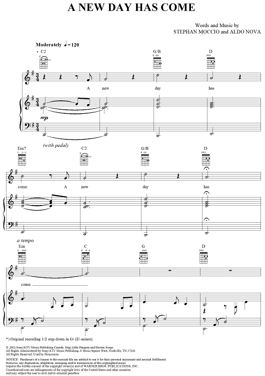 Digital Sheet Music for A New Day Has Come by Celine Dion, Aldo Nova, Stephan Moccio scored for Piano/Vocal/Chords; id:290116