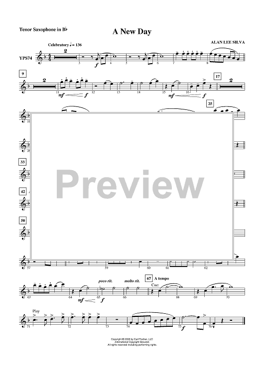 "A New Day - Tenor Sax" Sheet Music by Alan Lee Silva