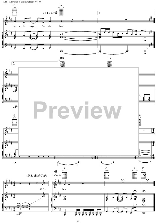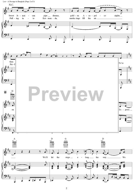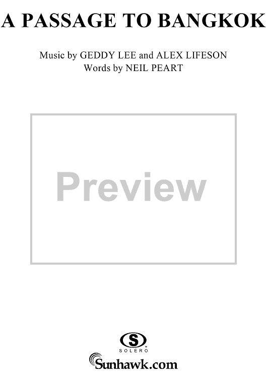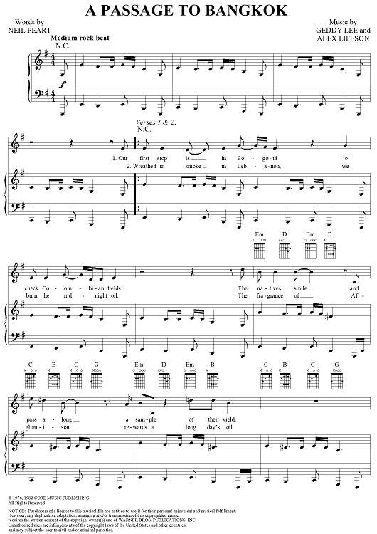 Digital Sheet Music for A Passage to Bangkok by Rush, Geddy Lee, Alex Lifeson, Neil Peart scored for Piano/Vocal/Chords; id:249858