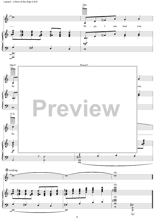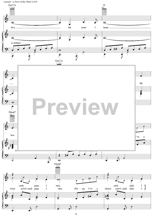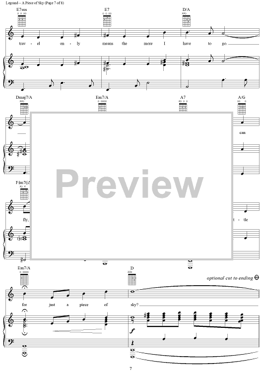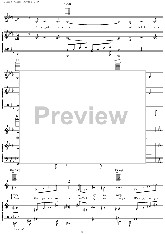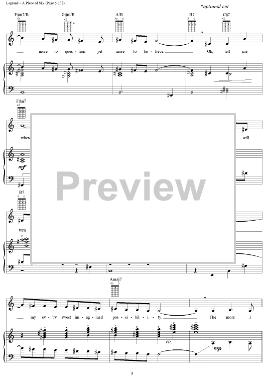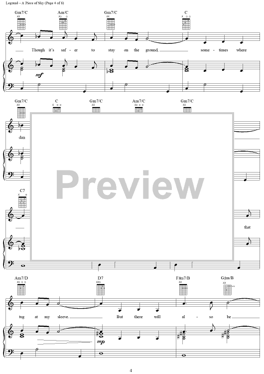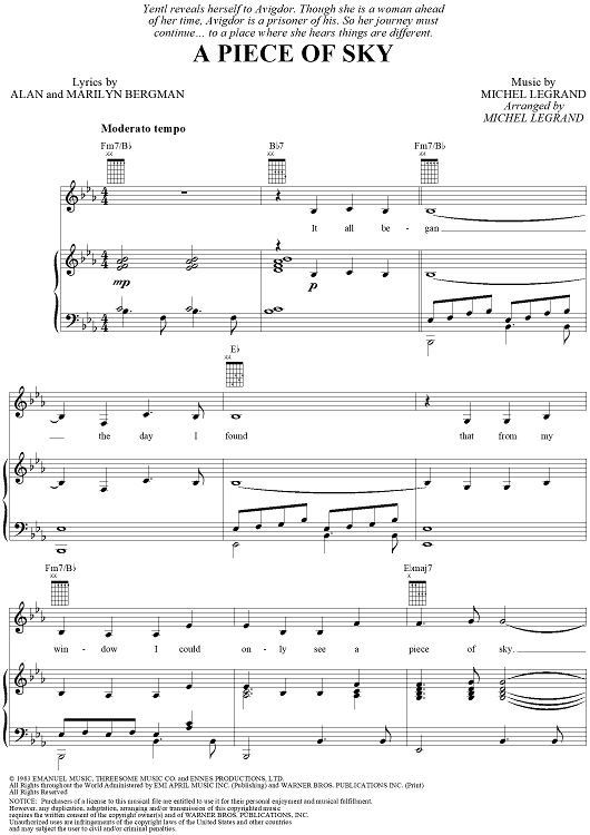 Digital Sheet Music for A Piece of Sky by Michel LeGrand, Alan Bergman, Marilyn Bergman, Barbra Streisand scored for Piano/Vocal/Chords; id:173731