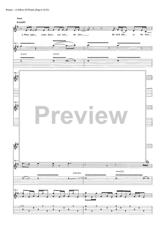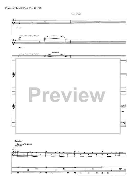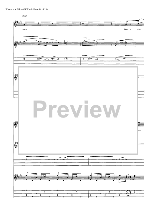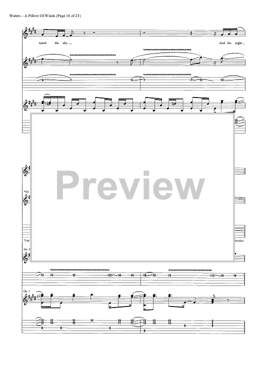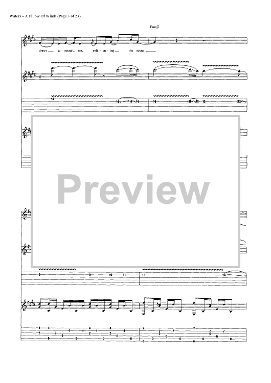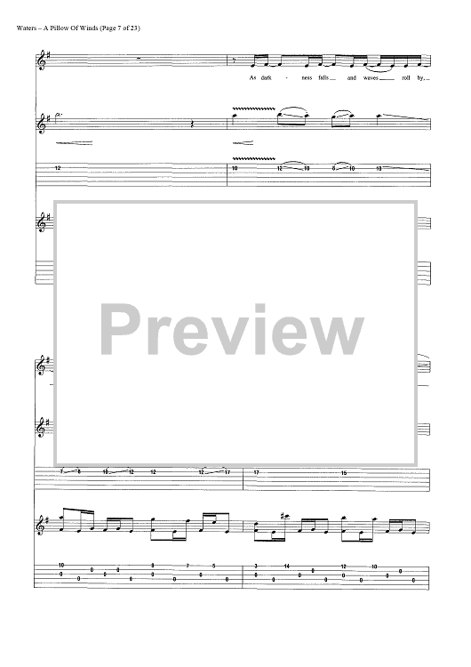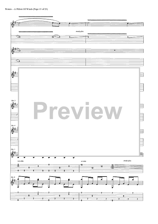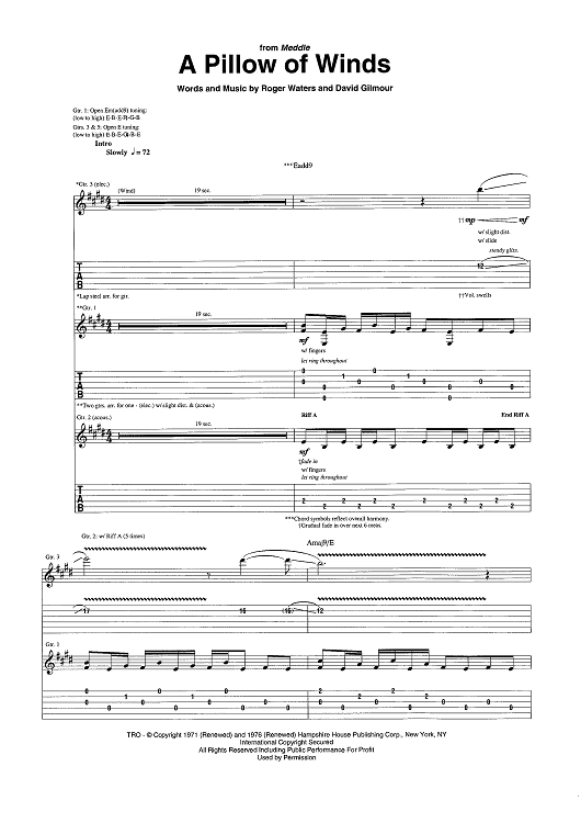 Digital Sheet Music for A Pillow of Winds by Pink Floyd, David Gilmour, Roger Waters scored for Guitar Tab/Vocal/Chords; id:444886