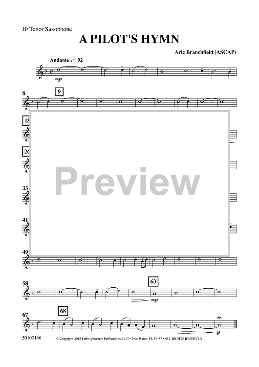 "A Pilot's Hymn - Bb Tenor Sax" Sheet Music by Aric Branchfield