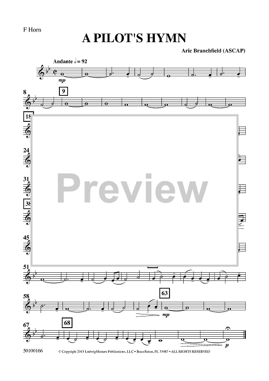 Digital Sheet Music for A Pilot's Hymn - Horn in F by Aric Branchfield scored for Concert Band; id:459556