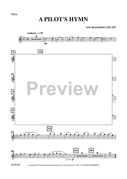 Digital Sheet Music for A Pilot's Hymn - Oboe by Aric Branchfield scored for Concert Band; id:459545