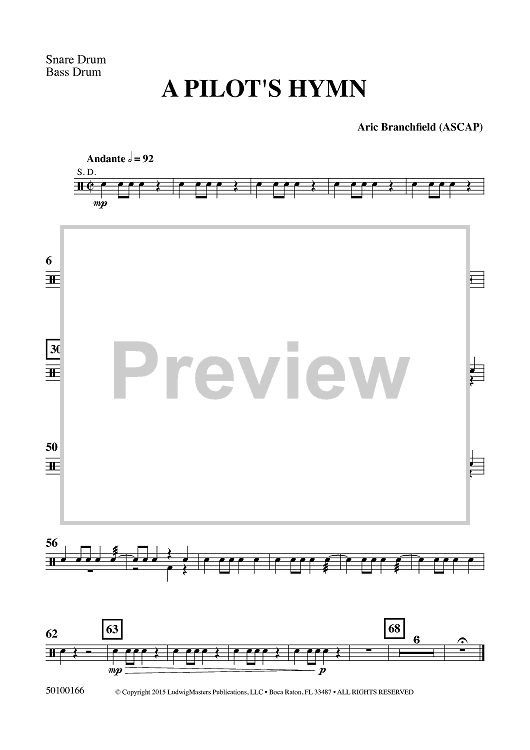 Digital Sheet Music for A Pilot's Hymn - Snare Drum / Bass Drum by Aric Branchfield scored for Concert Band; id:459562
