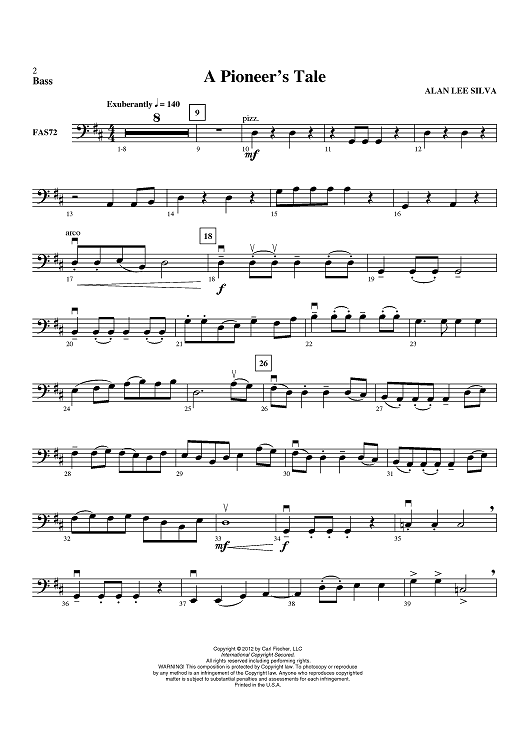 "A Pioneer’s Tale - Bass" Sheet Music by Alan Lee Silva