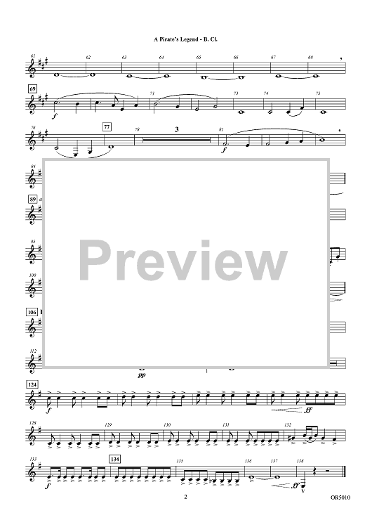 Digital Sheet Music for A Pirate's Legend - Bb Bass Clarinet by Soon Hee Newbold, Carl Rydlund scored for Orchestra; id:446903