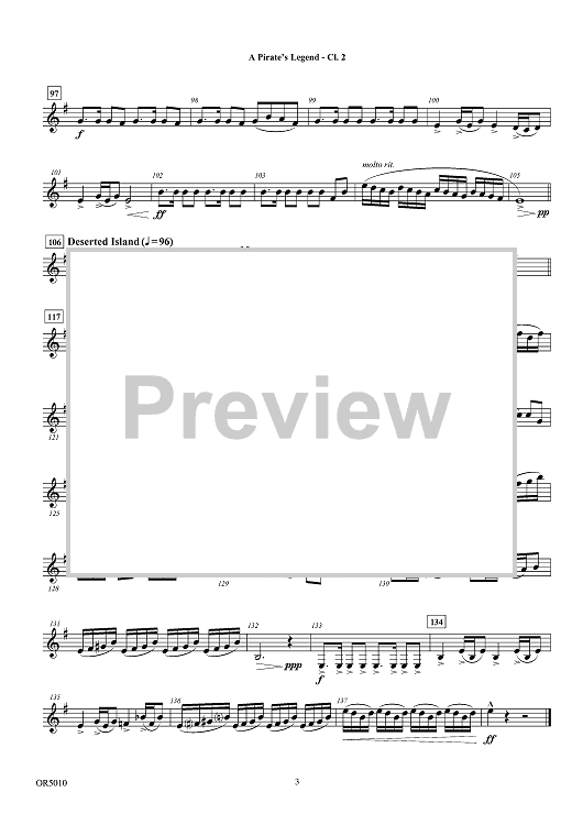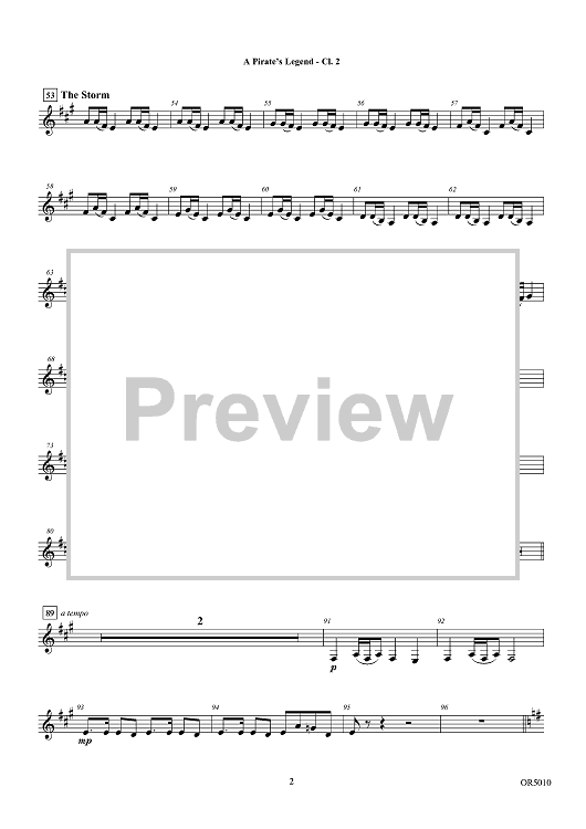 Digital Sheet Music for A Pirate's Legend - Bb Clarinet 2 by Soon Hee Newbold, Carl Rydlund scored for Orchestra; id:446886