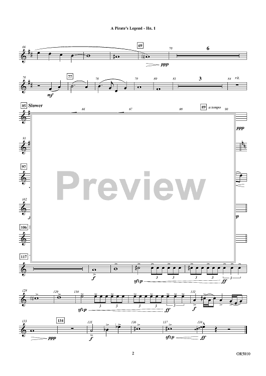 Digital Sheet Music for A Pirate's Legend - F Horn 1 by Soon Hee Newbold, Carl Rydlund scored for Orchestra; id:446888