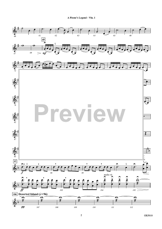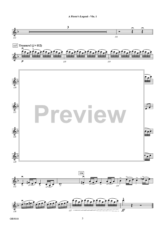 Digital Sheet Music for A Pirate's Legend - Violin 1 by Soon Hee Newbold, Carl Rydlund scored for Orchestra; id:446898