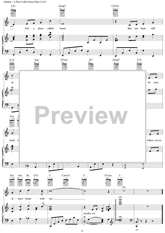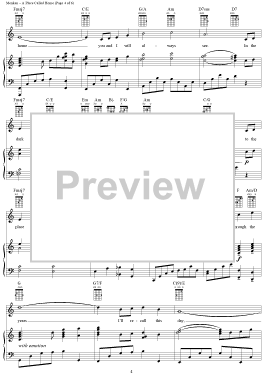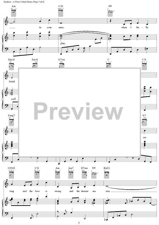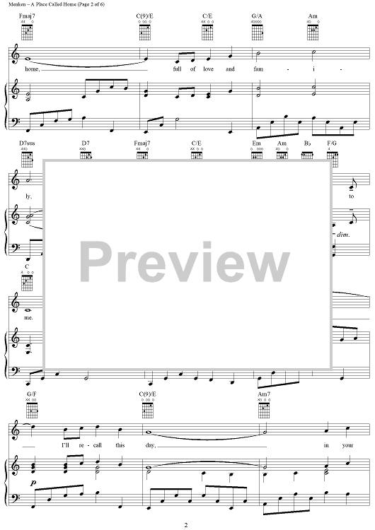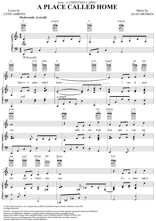 Digital Sheet Music for A Place Called Home by Lynn Ahrens, Alan Menken scored for Piano/Vocal/Chords; id:283964