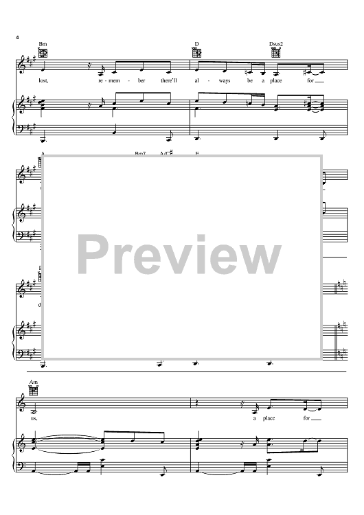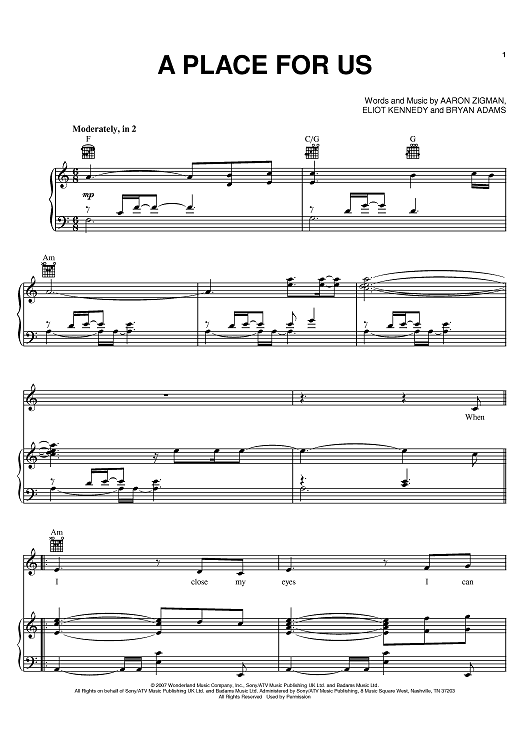Digital Sheet Music for A Place For Us by Bryan Adams, Eliot Kennedy, Aaron Zigman, Leigh and Tyler James Nash scored for Piano/Vocal/Chords; id:397993