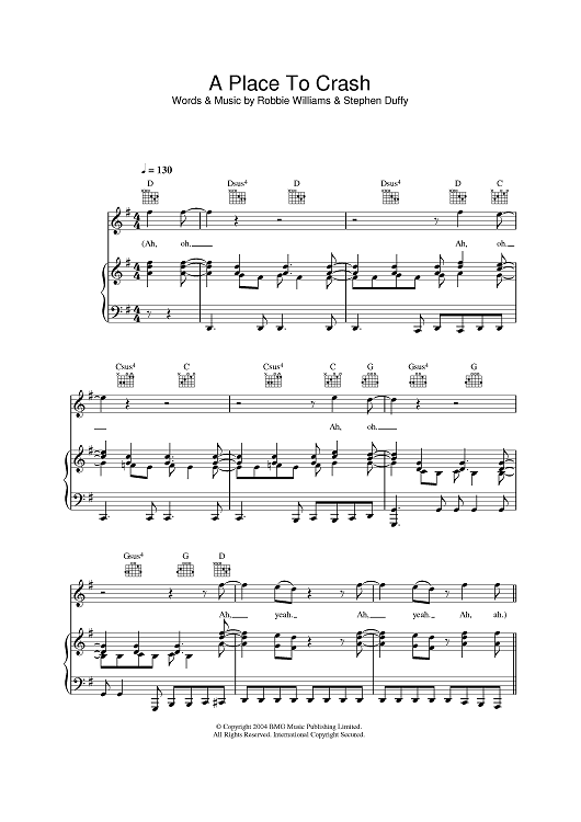 Digital Sheet Music for A Place To Crash by Robbie Williams, Stephen Duffy scored for Piano/Vocal/Chords; id:387493