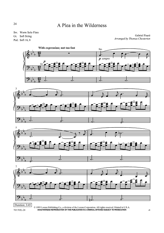 Digital Sheet Music for A Plea in the Wilderness by Gabriel Fauré, Thomas Chesterton scored for Organ Solo; id:433961