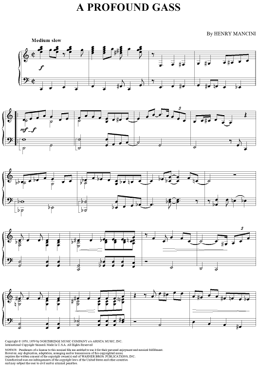 Digital Sheet Music for A Profound Gass by Henry Mancini scored for Piano Solo; id:251578