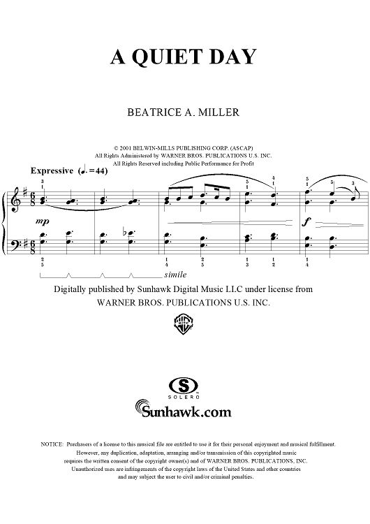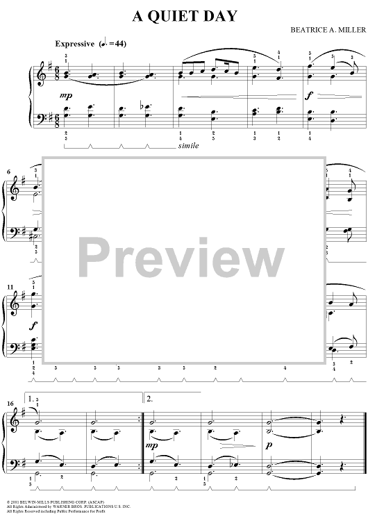 Digital Sheet Music for A Quiet Day by Beatrice A. Miller scored for Piano Solo; id:292734