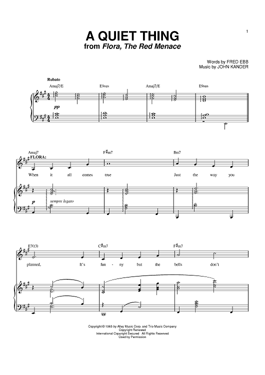 Digital Sheet Music for A Quiet Thing by John Kander, Fred Ebb scored for Piano/Vocal/Chords; id:387619