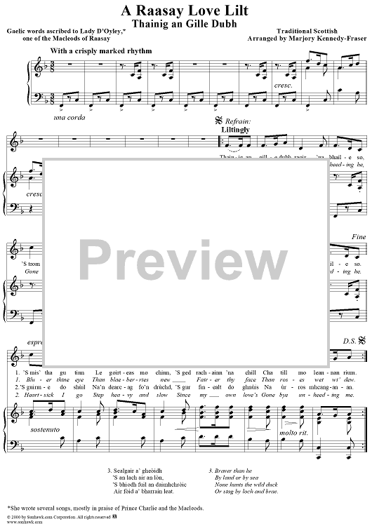 Digital Sheet Music for A Raasay Love Lilt by Lady D'Oyley, Marjory Kennedy-Fraser, Traditional scored for Piano/Vocal; id:215554