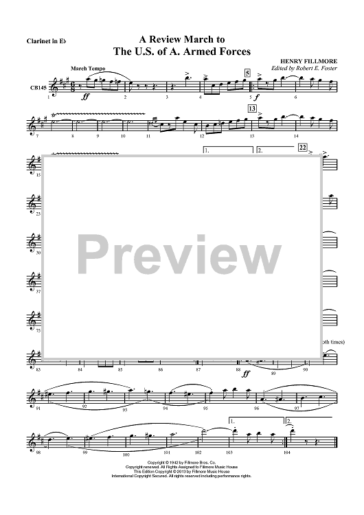 Digital Sheet Music for A Review March to The U.S. of A. Armed Forces - Clarinet in Eb by Henry Fillmore, Robert E. Foster scored for Concert Band; id:435473