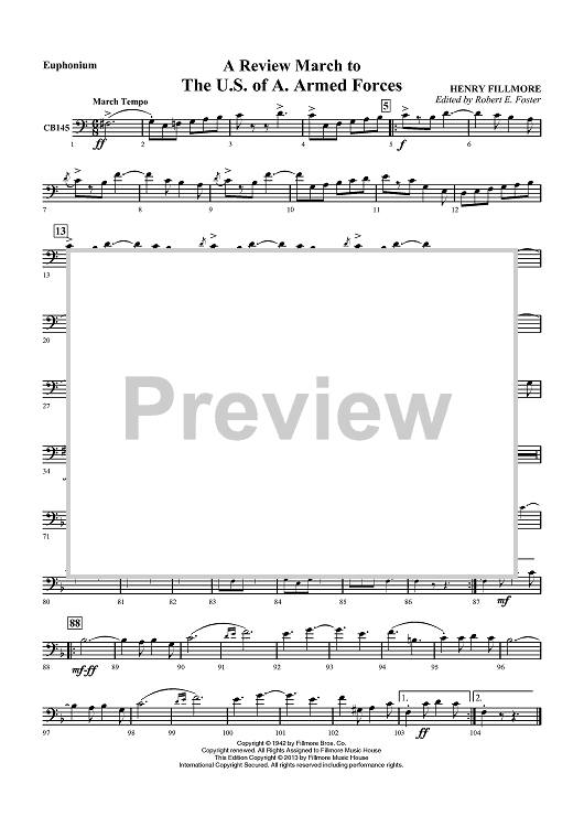 "A Review March to The U.S. of A. Armed Forces - Euphonium BC" Sheet Music by Henry Fillmore